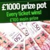 Over £1500 total prize pot and a WIN every time. All tickets are automatically put into the final live draw to win £100 cash.