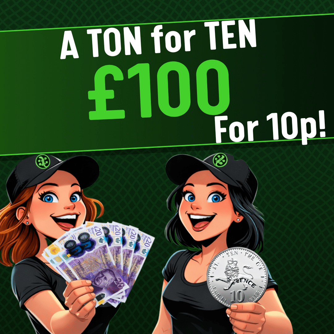 Win £100 cash for just ten pence. Quick, easy, simple. Not too shabby. Good luck