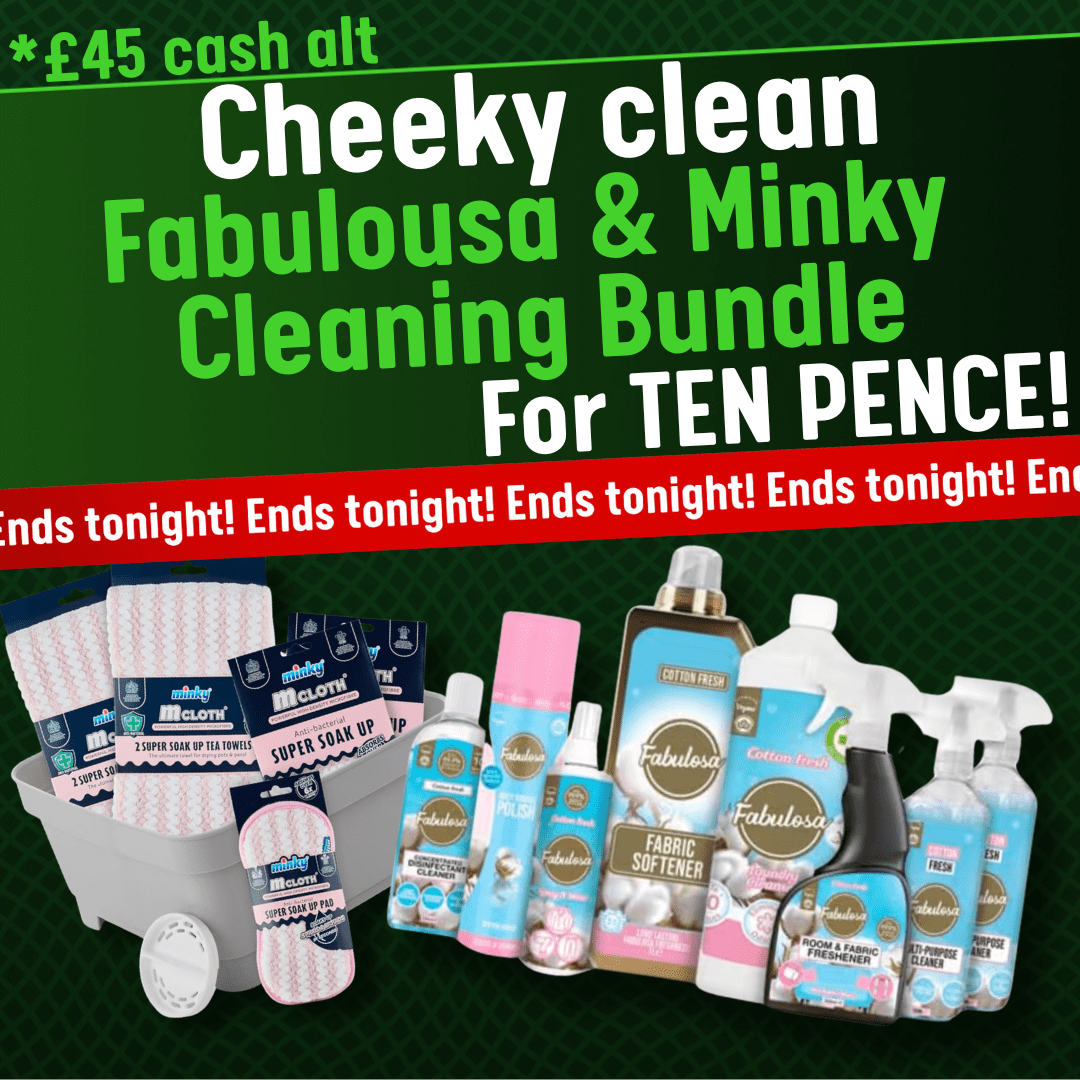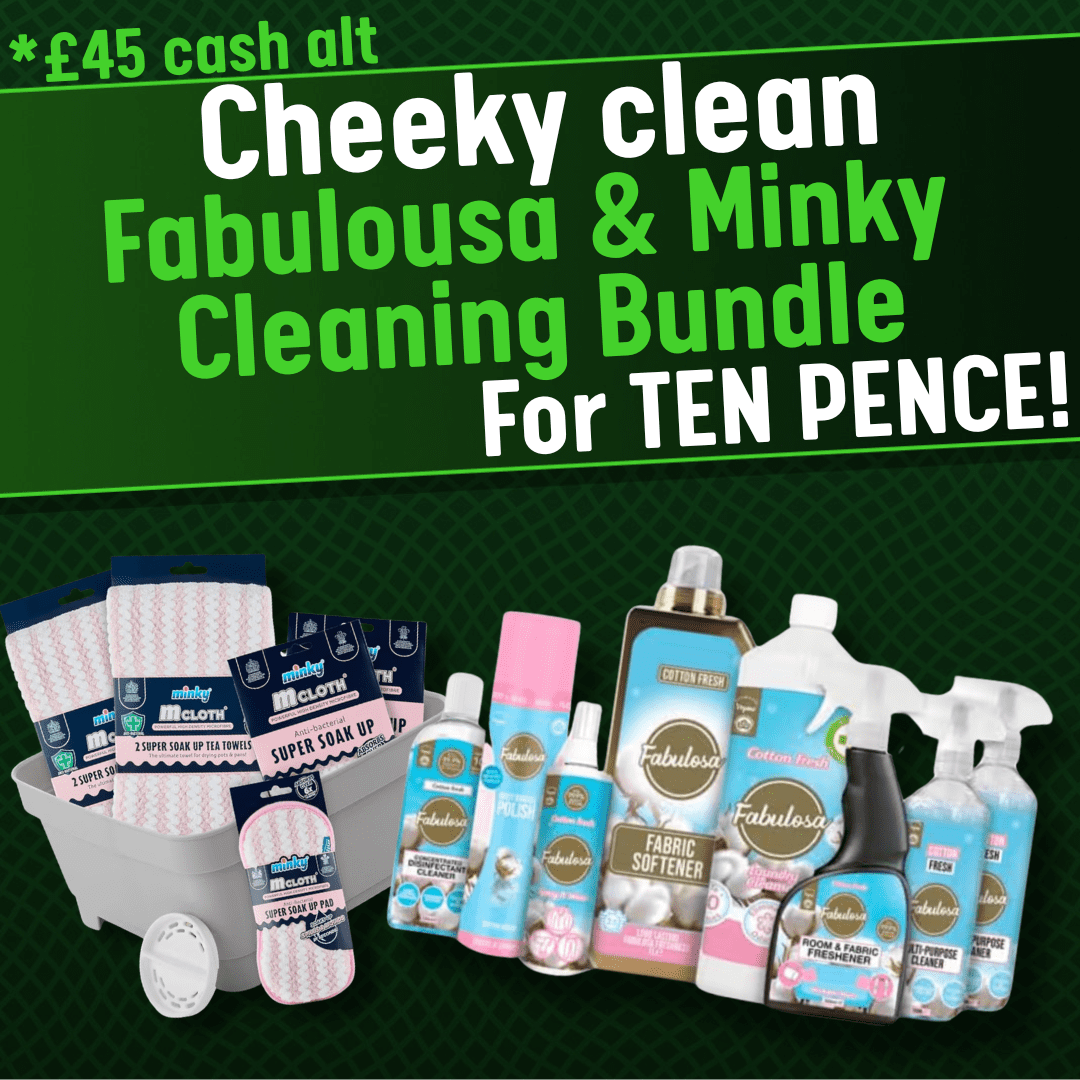 Winter can’t last forever can it? I know it feels like that however lets get into the spring mood….. starting with a spring clean. This very cheeky cleaning bundle has everything you need to get your house in order, cleaning products and accessories for just ten pence a ticket.
