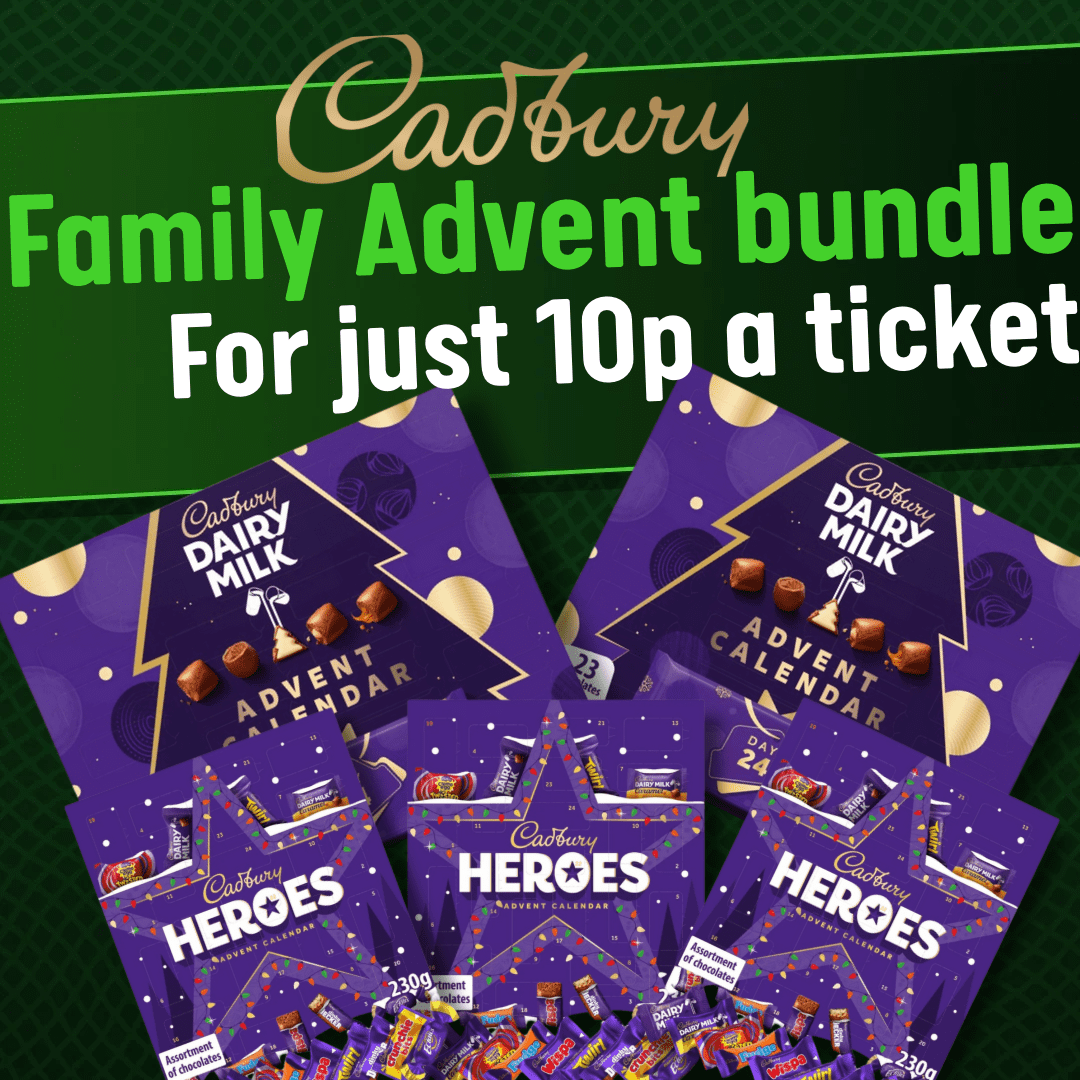 In this great prize you can win cadburys advent calendars for the full family, all for 10pence, thats right, 10 pence for 5 advent calendars.
