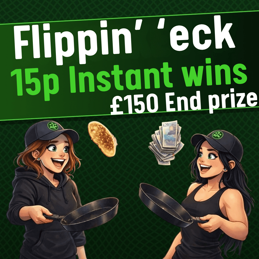 How’d ya like your pancakes? Big, fat and fluffy? Skinny crepe style? Bacon and syrup? Fruit? Icecream and nuts? Wow…. So many combinations. Luckily for this comp, you just need to toss them good! All tickets also go into the end draw of £150.