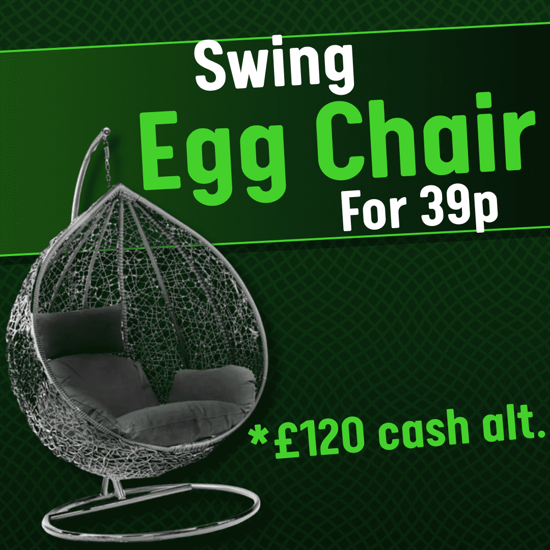 I’ve always wanted one of these….. just to relax in on those lovely summer days. You can be in with a chance of winning this Egg chair for just 39 pence. How nice would that look in your garden?