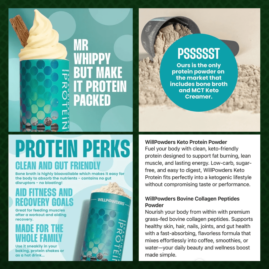This Willpowders vanilla keto protein powder and Bovine collagen peptides powder will help you start the new year healthy. The protein powder will help fuel your body and is designed to support fat burning, lean muscle and lasting energy. The collagen powder will help nourish your body from within and supports healthy skin, hair, nails, joints and gut health.