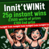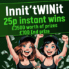 This quick instants game is just 25p a ticket. Instantly win £300 from a 25p ticket…. But you’ve got to be innit ‘twinnit.