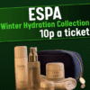 Win this ESPA winter hydration collection for just 10 pence. Espa is a well know luxury British beauty and skincare brand, known for its holistic, natural, spa inspired approach to skin care. Have that spa like luxury at home for just 10 pence. This winter hydration collection will comfort, soothe and defy harsh winter weather. Give your skin some love.
