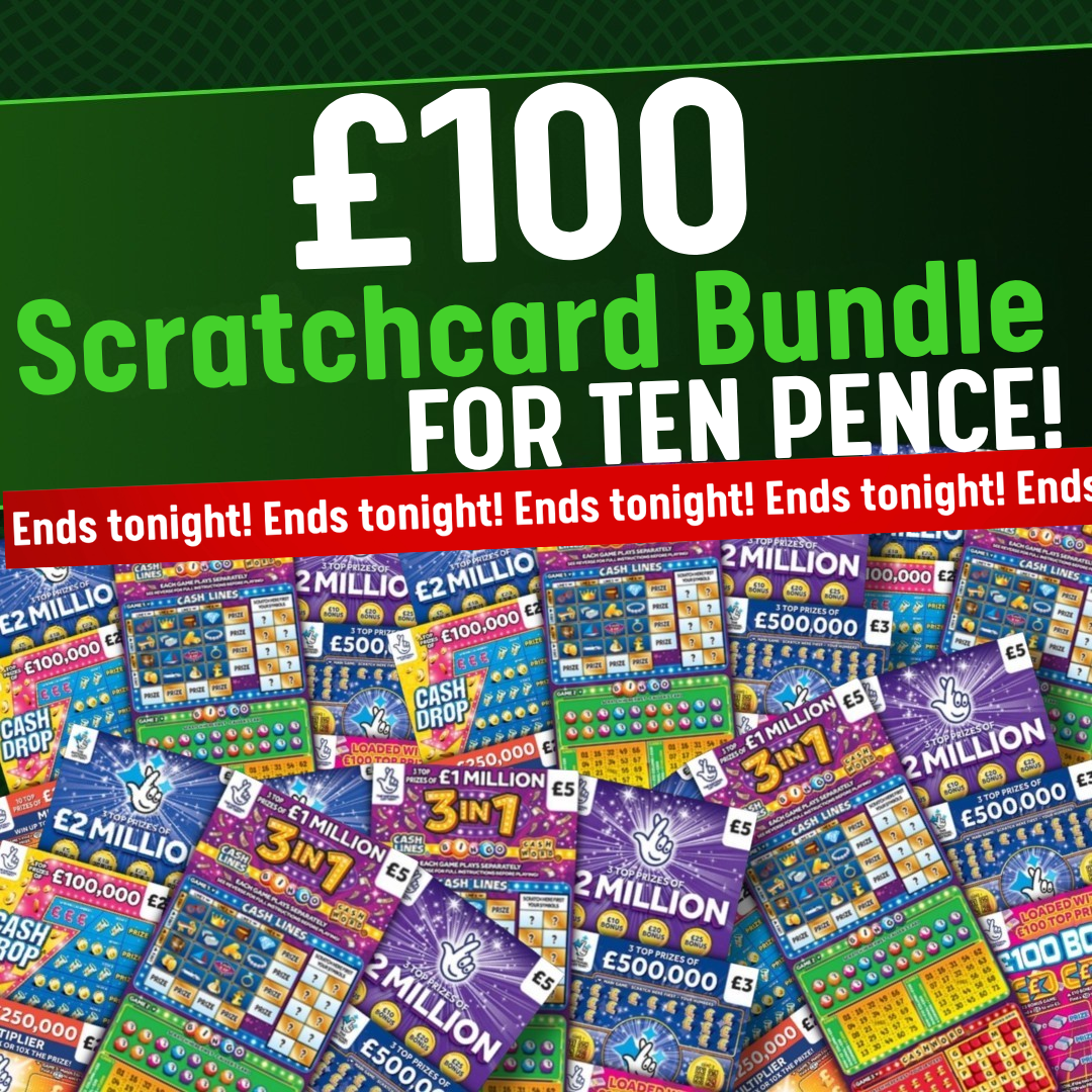 Its back!! This competition has so much potential. £100 national lottery scratchcards for just TEN PENCE. Thats right. It usually cost you £1 for just one in the shops where you can win £100 worth for just ten pence.